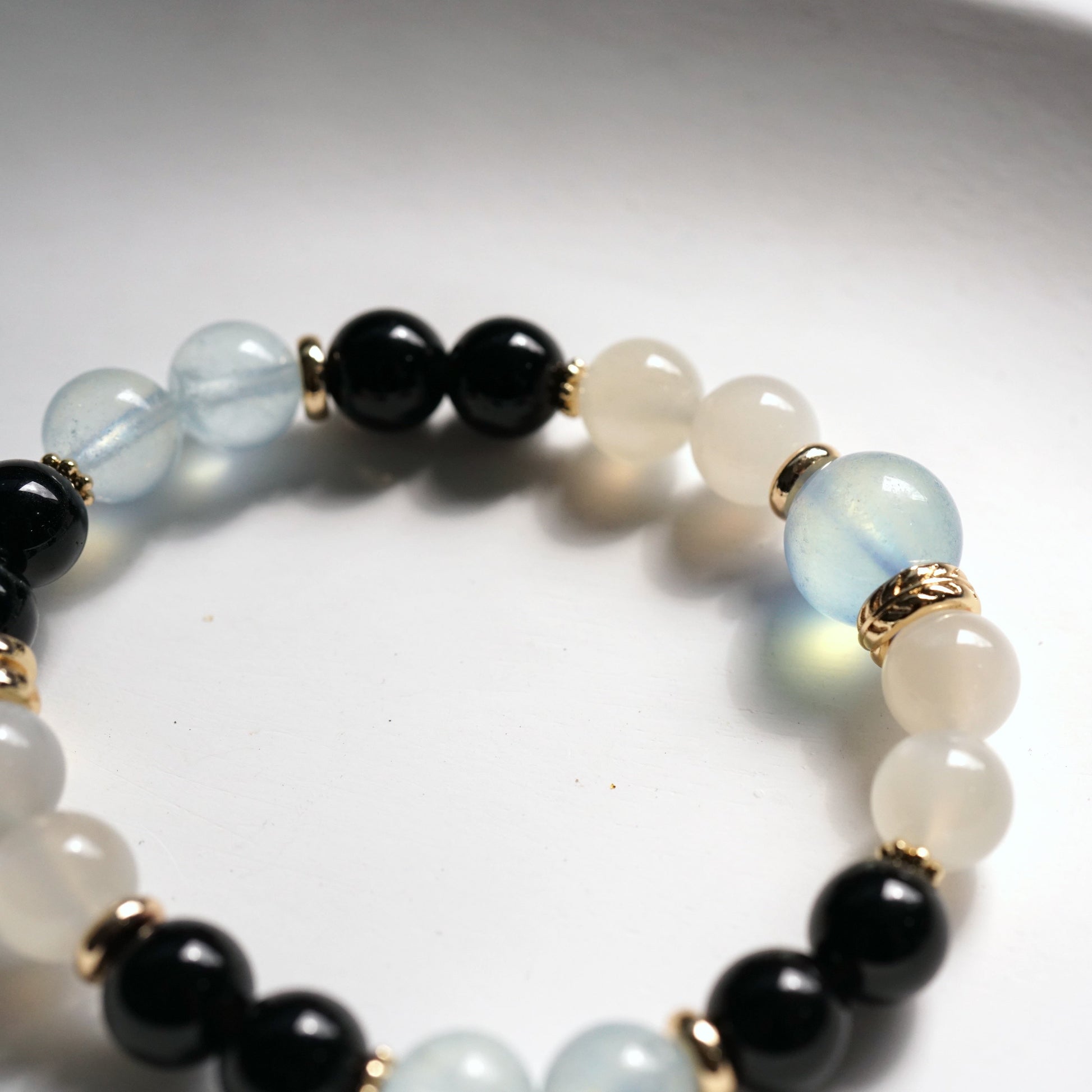 This bracelet trio is designed to cool excess fire, sharpen focus, and anchor energy — allowing Water to remain fluid yet resilient. Designed for the Pig in a Fire-dominant year — calm, grounded, and steady.